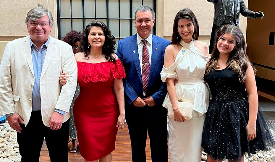 Dani Alonso com sua filha Bruna; capitão Augusto (deputados pela região) com o prefeito Daniel e esposa, dona Regina.
