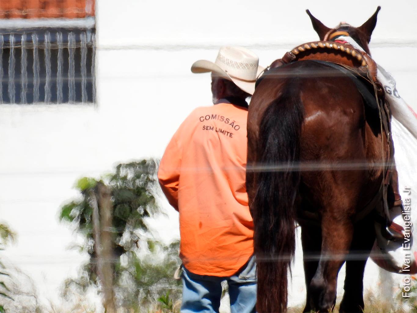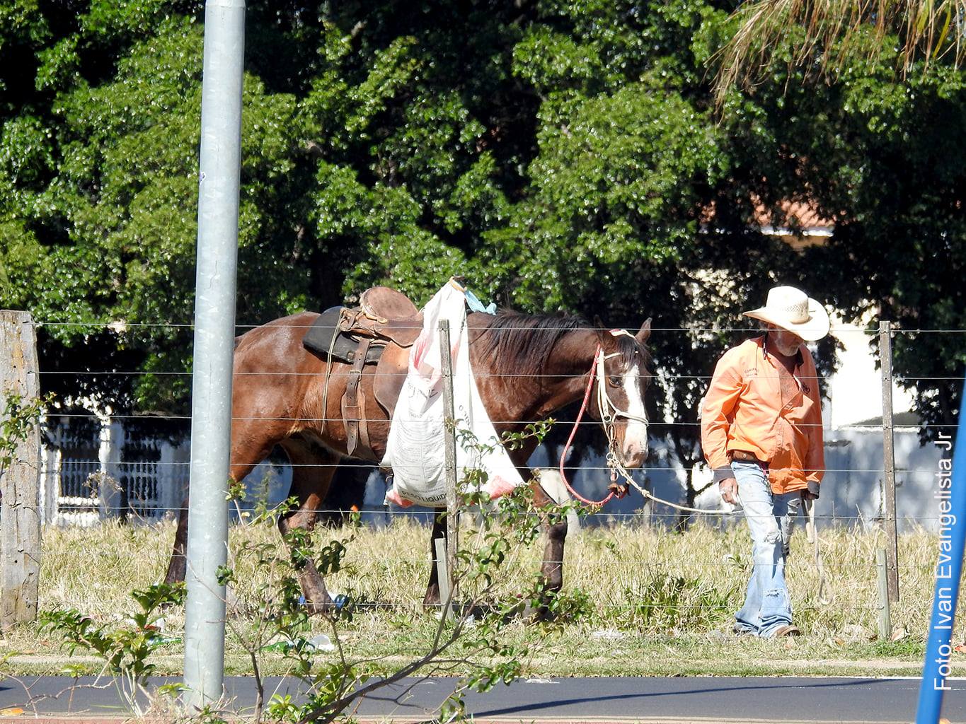 Este senhor, um peão por tradição, estava fazendo a coleta do lixo junto com seu cavalo. Nas costas da blusa que vestia a identificação da tropa que tem orgulho de fazer parte e três palavras que me inspiraram a fazer as fotos e a escrever este texto.
