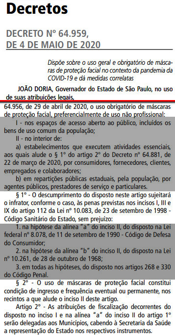 De acordo com o decreto estadual, a obrigatoriedade vale enquanto perdurar a quarentena no estado de São Paulo.