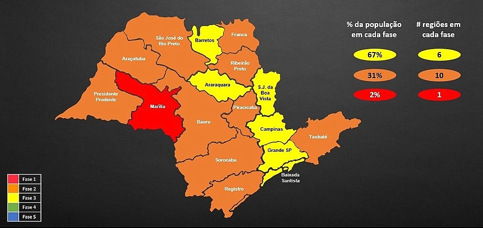 A região de Marília é a única do Estado na fase vermelha, nesta semana.