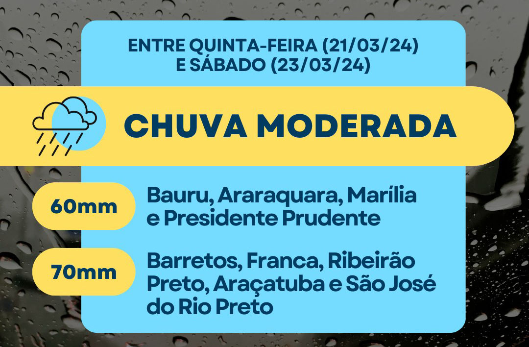 Conforme já estava previsto, o início do outono deve ter a primeira frente fria da nova estação, com previsão de chuva forte em todo o Estado de São Paulo. Nas regiões de Marília, Bauru e Presidente Prudente, a previsão de chover em torno de 60 mm. Mas, será bem menor do que no Litoral Norte e Vale do Paraíba: 250mm
