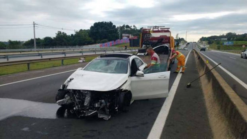 O carro dirigido pelo policial, que é chefe da Delegacia do Aeroporto de Guarulhos, teve a frente destruída, após bater na mureta que divide as pistas. O veículo pertence à Polícia Federal e era liberado para uso do delegado.