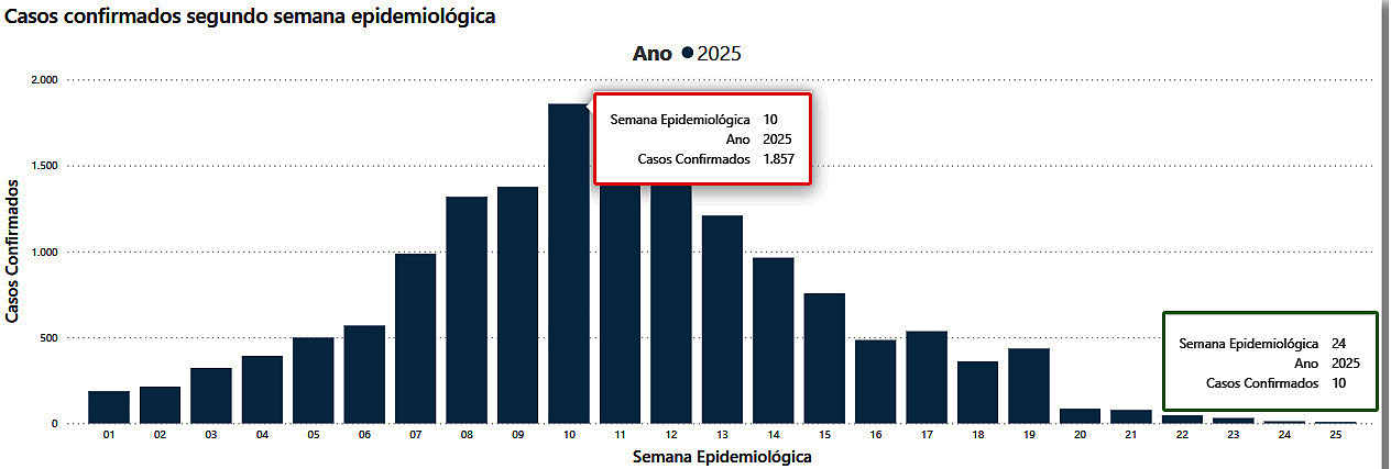 Última semana teve apenas 10 casos da doença. No pico chegou a 1.857 casos em apenas sete dias.
