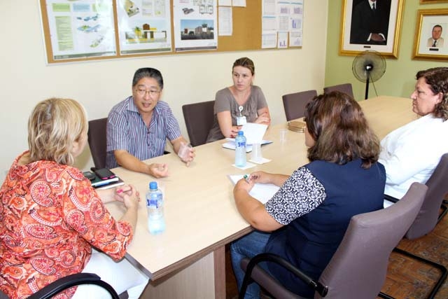 Takano participou de uma reunião para tratar de assuntos técnicos com a direção, coordenação de enfermagem e profissionais que trabalham nos processos que envolvem diretamente prevenção, detecção de casos suspeitos e notificação da doença.