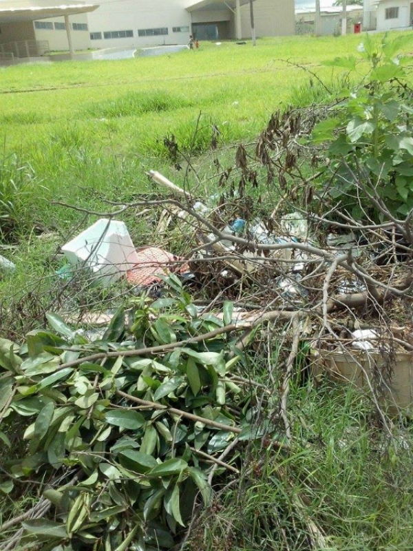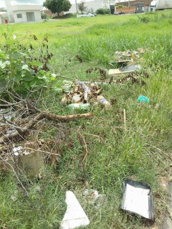 Um terreno localizado bem em frente as futuras instalações da UPA (Unidade de Pronto Atendimento) da zona Norte, no bairro Santa Antonieta, está se transformando num depósito de entulhos. Além da sujeira, um perigo a mais: existem muitos recipientes que podem acumular água (como latas e garrafas) e se transformar em criadouros do mosquito