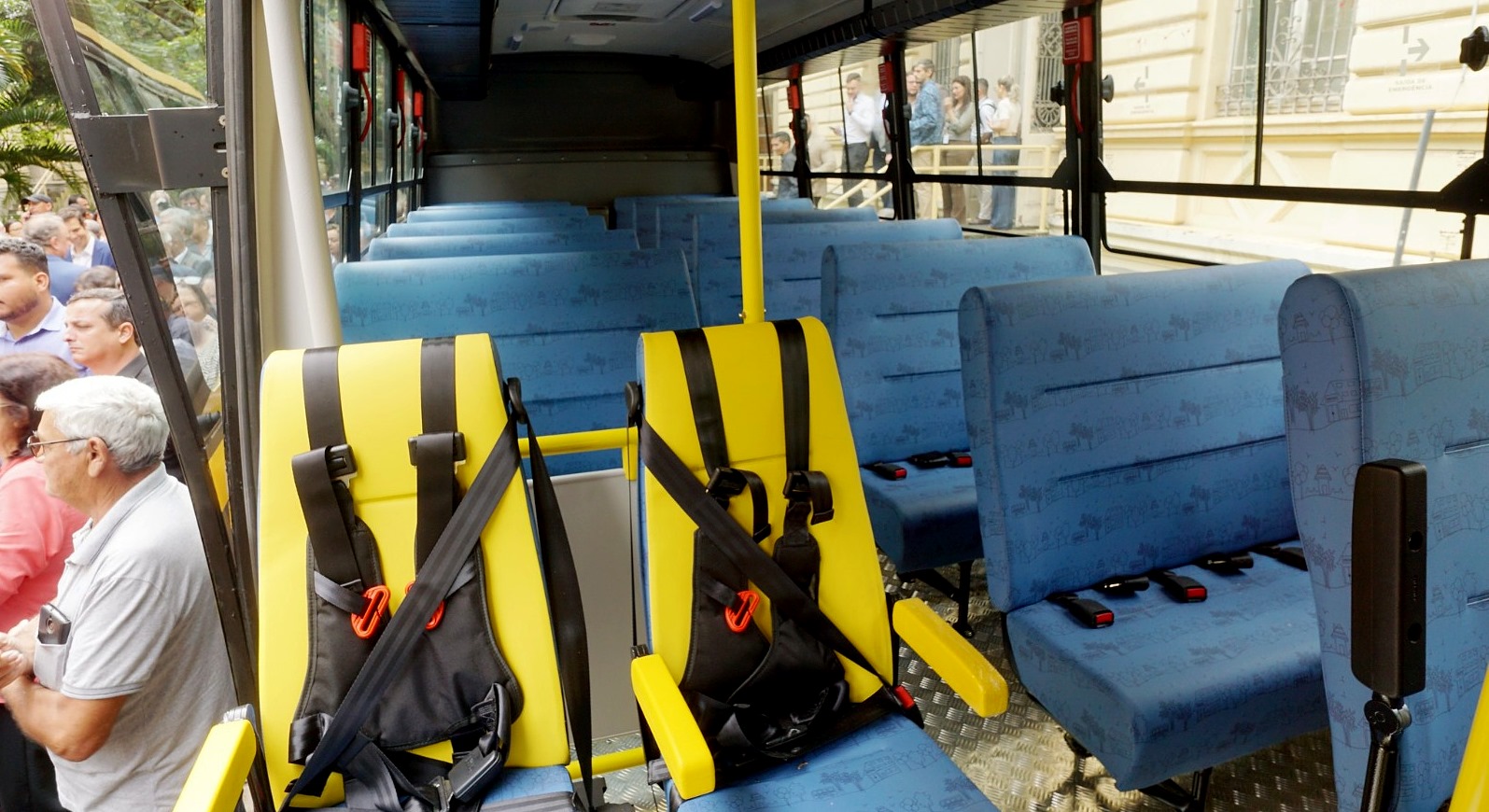 Os novos micro-ônibus são equipados com dispositivos para transposição de fronteiras, do tipo poltrona móvel, para garantir total acessibilidade de estudantes com deficiência ou estudantes com mobilidade reduzida.