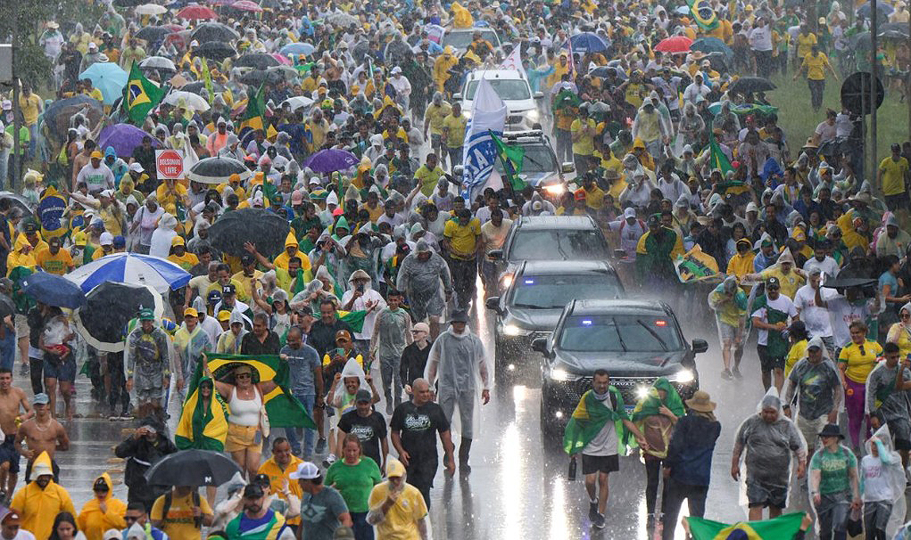 O final, porém, foi marcado por tensão. Antes do discurso, um raio atingiu manifestantes em meio a uma forte chuva.