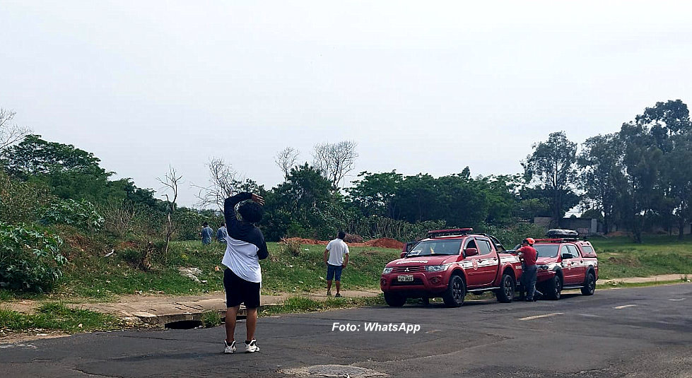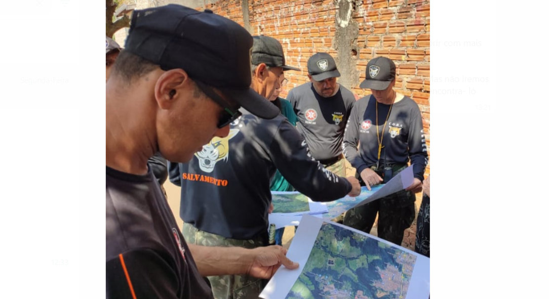 Cães farejadores da Polícia Militar também já estiveram ajudando e os Bombeiros estão usando inclusive drones que ampliam o rastreamento pelo alto.