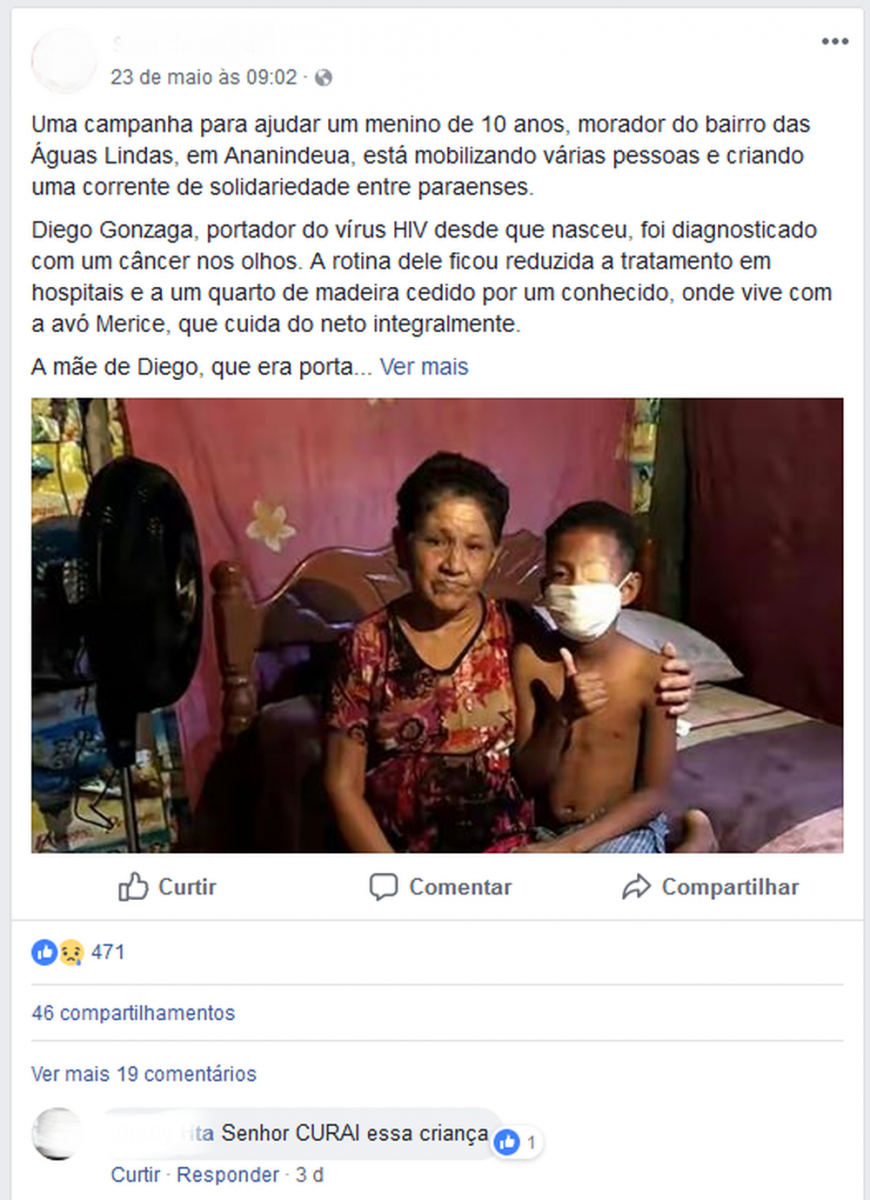 Uma campanha de solidariedade que arrecadou dinheiro para tratar da saúde de um menino de 10 anos, em Ananindeua, na Grande Belém, virou caso de polícia. Um inquérito de investigação foi aberto diante de indícios de crime de estelionato. A mãe e a avó da criança, que à época da campanha alegaram que o garoto era soropositivo e tinha um câncer nos olhos, são suspeitas de inventar as doenças para comover voluntários a doarem verbas à família.