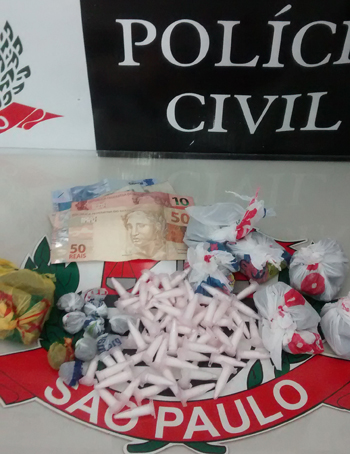 Com ele, foram apreendidas 10 porções pequenas de maconha, embaladas individualmente e um tablete de maconha e a quantia em dinheiro no valor de R$60,00 (sessenta reais). Também foi detido um usuário, morador em Echaporã, que estava comprando entorpecentes.