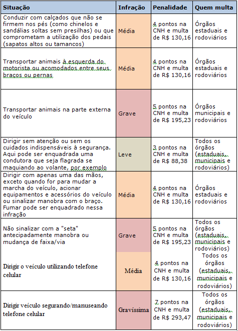 Confira abaixo algumas atitudes no trânsito que podem gerar multas: