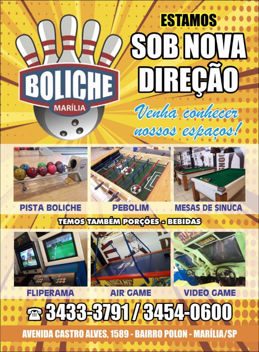 O Boliche Marília, que completa oito anos, está sob nova direção. São oito pistas (cada uma delas com até seis jogadores) e oferece também toda estrutura de lazer, como bar, porções, games, sinuca, pimbolim, air game.