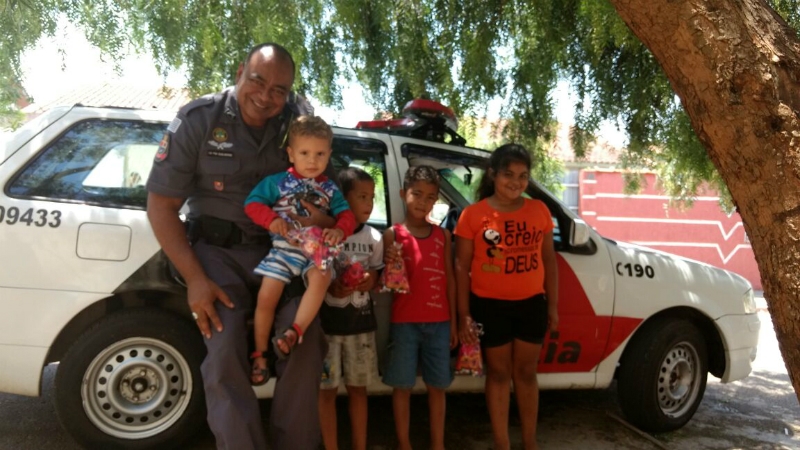 Já no pequeno município de Alvinlândia (cerca de 3 mil habitantes) quem fez a festa da garotada mais carente foi o cabo PM Paulo Henrique Guilherme. Transferido há quatro meses para a cidade, ele decidiu manter uma tradição que realizou durante mais de 10 anos em Campinas: com o próprio salário comprou os brinquedos e, durante o patrulhamento nesta quarta-feira, quando encontrava uma criança, descia da viatura e, após pedir autorização aos pais, entregava o presente.