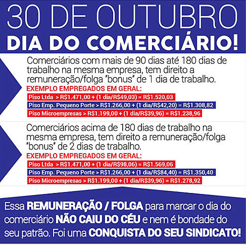 “Todo comerciário com registro a partir de 3 meses na mesma empresa tem direito ao abono de um ou dois dias trabalho de acordo com o tempo de registro”, afirmou.