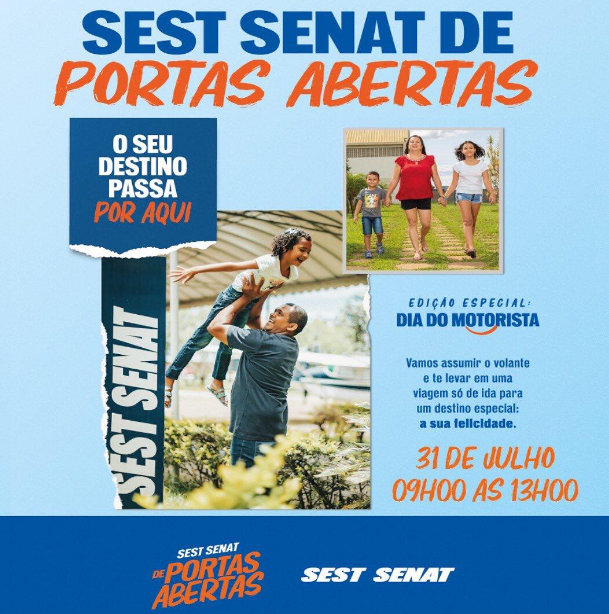 O SEST SENAT estará realizando no próximo domingo (dia 31) mais uma mobilização e abre as portas da unidade para comemorar o Dia do Motorista (dia 25 de julho). Será a chamada "Portas Abertas", com atividades que serão realizadas das 9 às 13h.