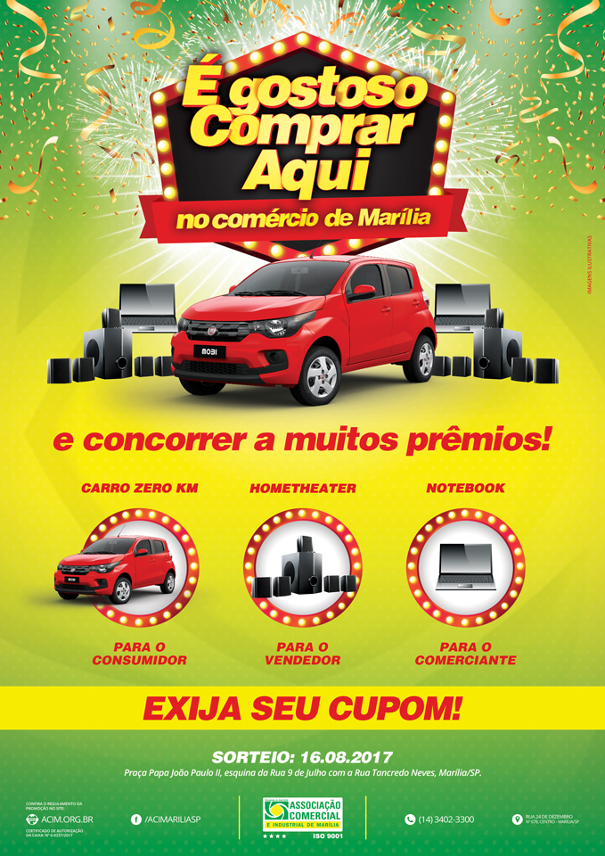 Haverá sorteio de prêmios, a exemplo de outras datas comemorativas durante o ano: a cada compra acima de R$ 50,00 o consumidor passa a ter direito ao preenchimento do cupom e concorrer ao automóvel zero quilômetro.