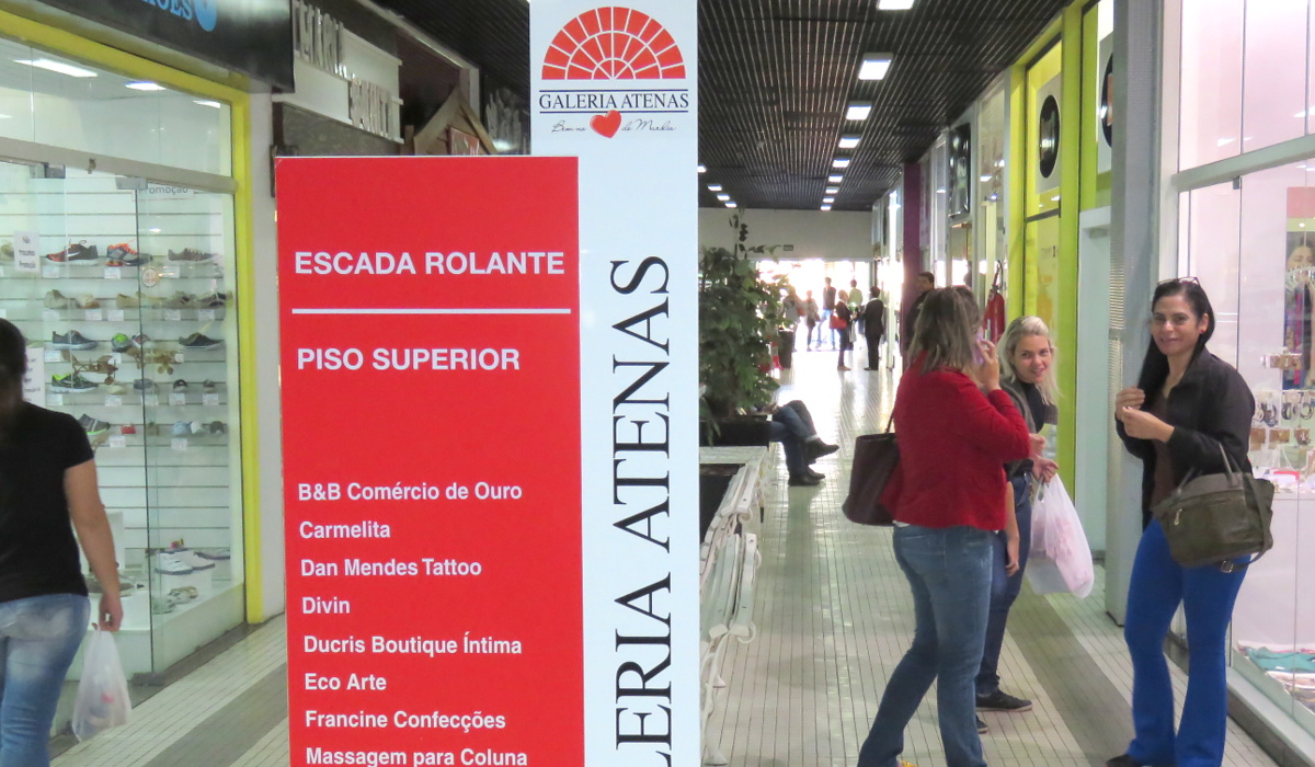 ESTRUTURA - Localizada no coração comercial da cidade (rua 9 de julho) e com mais de 40 lojas, a Galeria Atenas completou 24 anos de atividades. Com praça de alimentação e escada rolante, o consumidor encontra uma variedade de lojas para suas compras, tudo com conforto e segurança com estacionamento.