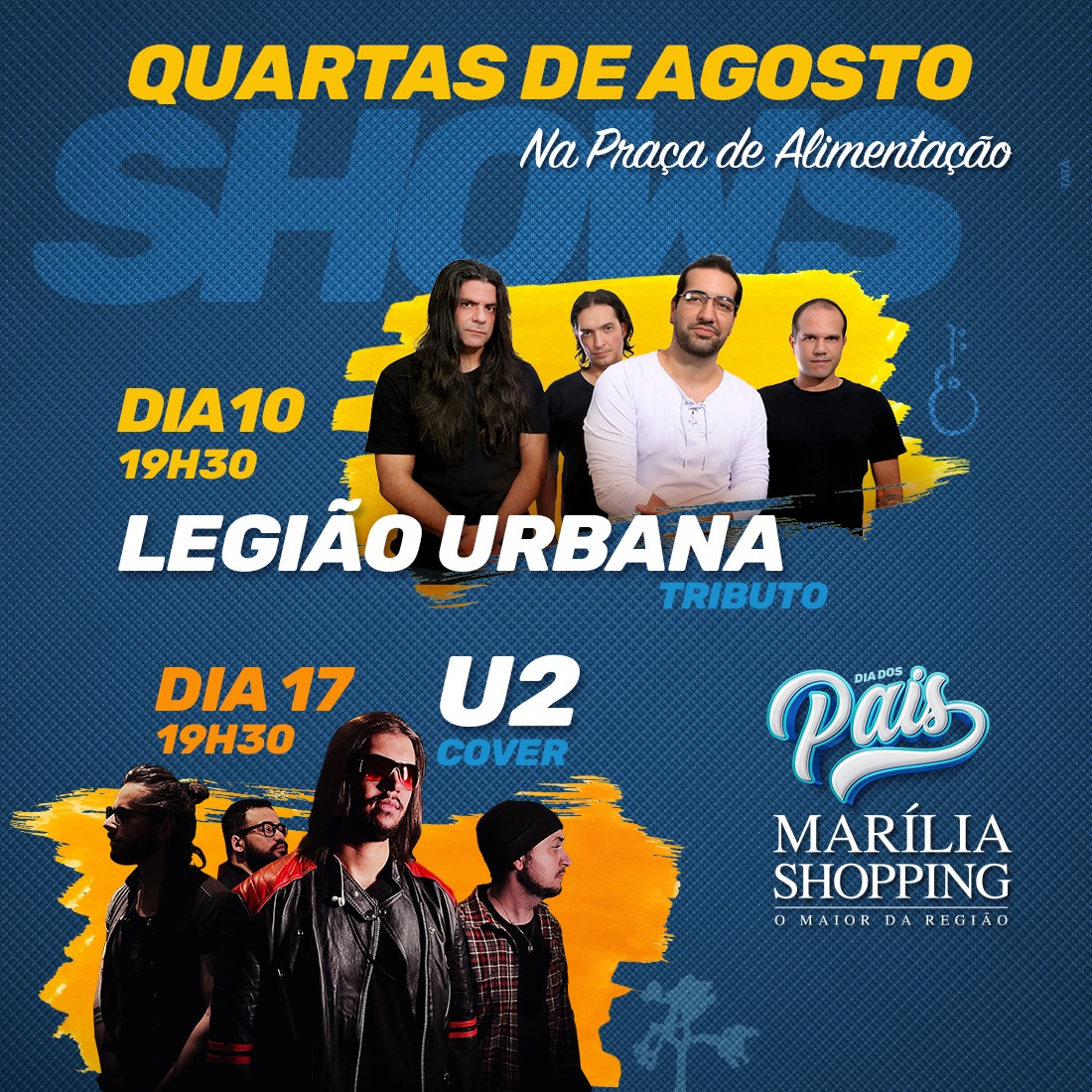 Entre os destaques, o empreendimento traz tributos a grandes nomes da música nacional e internacional com as bandas Legião Urbana Tributo e U2 Cover que serão responsáveis por oferecer momentos emocionantes para os pais de todas as idades.