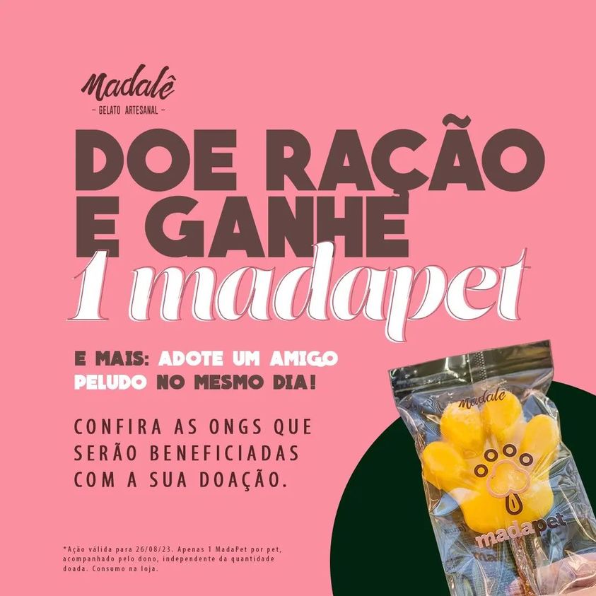 As pessoas que fizerem doação, a partir de 500g de ração e trazer seu fiel aumiguinho para o evento , o animalzinho vai ganhar um MadaPet.
