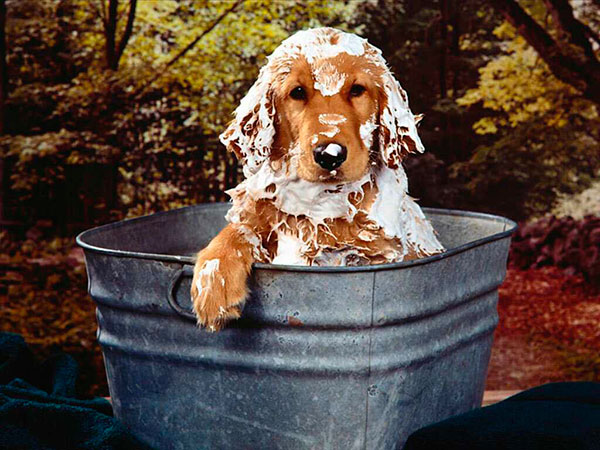 11 - Massagem relaxante – Uma massagem bem gostosa ajuda a espalhar o shampoo e remover a sujeira, mas o melhor é o carinho que você dá para o bichão. Você também pode usar a Rasqueadeira de Borracha para fazer a massagem, mas sempre termine usando seus dedos, pois nada é igual à mão da pessoa amada (pelo cão);