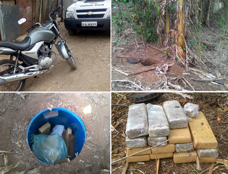 Em consulta foi constatado que a moto havia sido furtada no último dia 29 na Vila Hípica Paulista. Enquanto perseguiam o rapaz os policias passaram por algumas bananeiras e notaram que a terra havia sido removida recentemente, o que motivou uma averiguação. No local encontraram um tambor contendo 16 tabletes de maconha, totalizando 15 quilos do entorpecente.