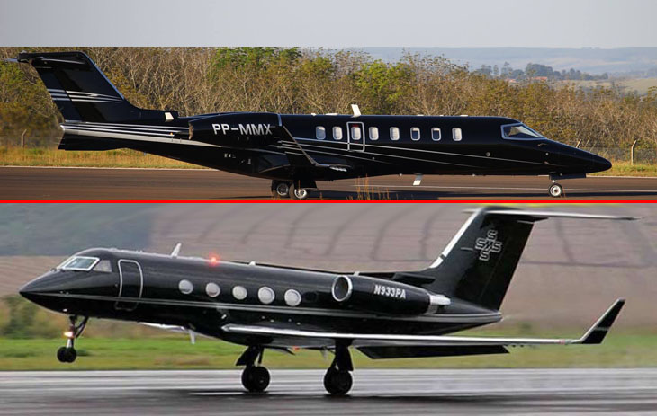 Na foto acima, o jatinho que esteve em Marília. Abaixo, o que pertence a Lulinha: aeronaves diferentes