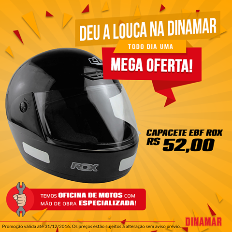SERVIÇOS - A Dinamar também disponibiliza produtos da área de moto peças, além de acessórios. Trata-se da Dinamar Motopeças que conta com um espaço exclusivo para a oficina destinada ao atendimento dos seus clientes.