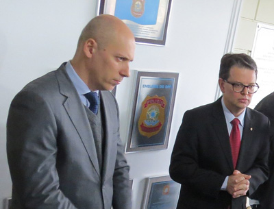 Delegado chefe da PF em Marília, Fernando Battaus, e o Procurador, Jefferson Dias, falam à imprensa sobre a operação na FAMEMA.