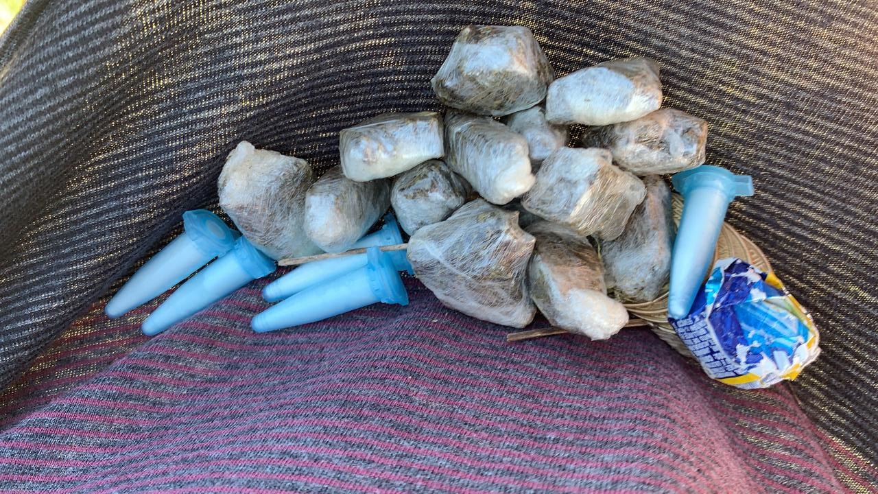 Após diligencias, os agentes da delegacia especializada surpreenderam a menor comercializando ilicitamente os entorpecentes e em seu poder 14 porções de maconha e 05 pinos de cocaína, além de R$ 64.