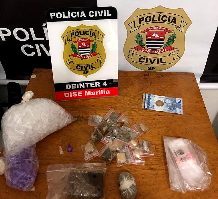Uma operação conjunta entre equipes da DISE (Delegacia de Investigações Gerais) e o canil do BAEP (Batalhão de Ações Especiais de Polícia) da Polícia Militar "derrubou" um ponto de tráfico na zona sul de Marília conhecido como “biqueira da chacrinha”. Um homem foi preso em flagrante com diversas porções de drogas e dinheiro.
