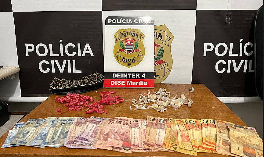 No interior de uma pequena bolsa haviam 174 porções de crack prontas para a venda (embaladas em “correntinha”) e uma porção de maconha, além de quase 500 reais em dinheiro, o que comprovou a grande movimentação de vendas até aquele momento.