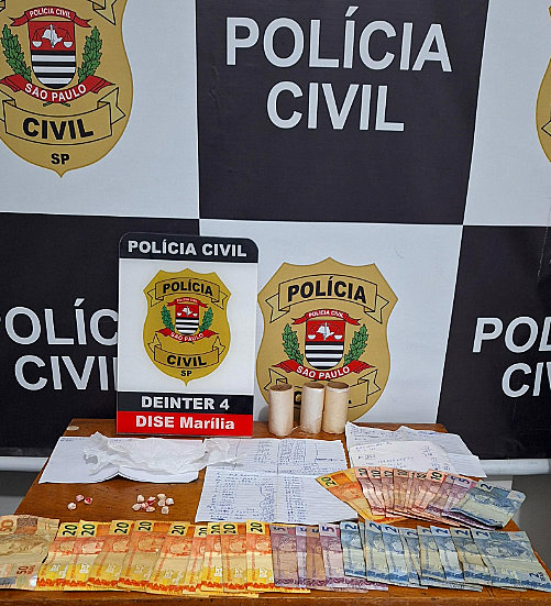 No local, foram encontradas drogas (12 porções em pedra de “crack”), anotações do tráfico e dinheiro.