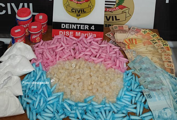 Na casa deles foram encontradas mais de 600 porções de entorpecentes e outros produtos do tráfico