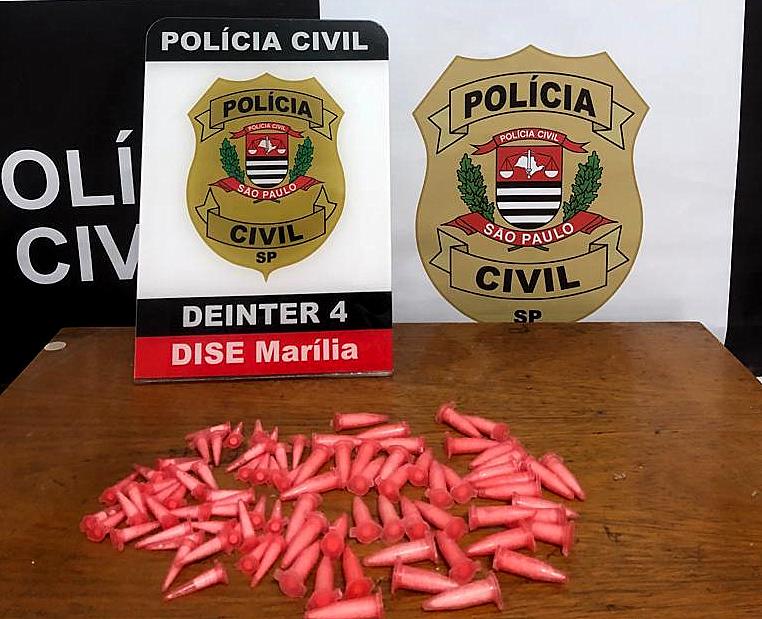 O esconderijo foi localizado, com a apreensão de 89 pinos de cocaína. O acusado foi preso em flagrante e ficou à disposição da justiça.