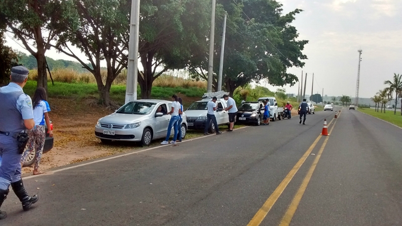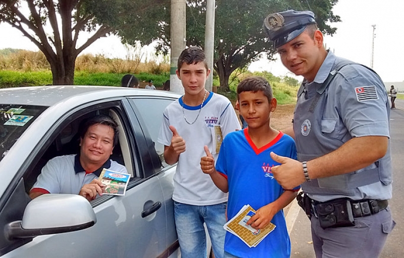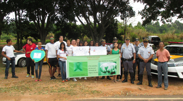 Os jovens foram mobilizados na saída da cidade (em local de grande movimento de veículos) onde, com apoio dos patrulheiros rodoviários, os alunos do Grêmio Estudantil da EE Dona Vitu Giorgi procuraram conscientizar os motoristas sobre as duas campanhas.