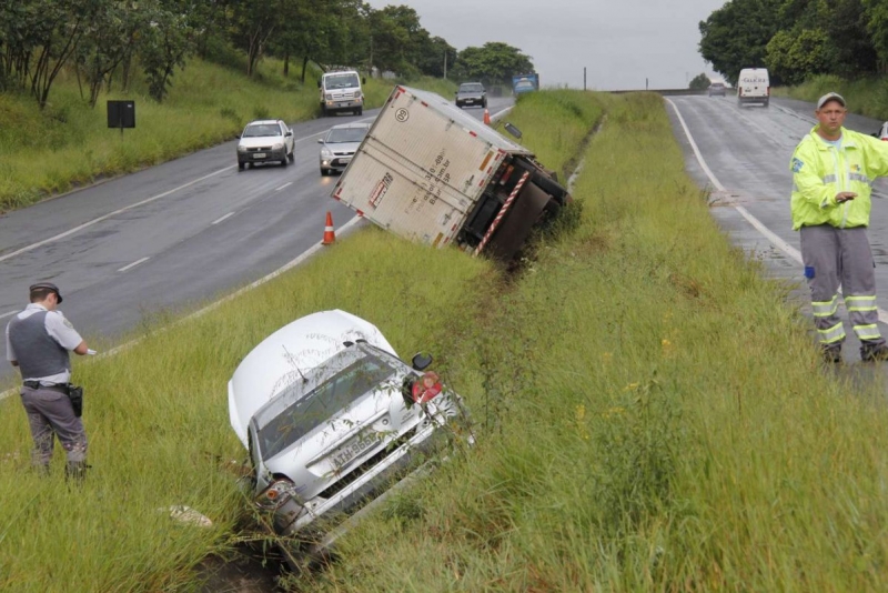 Dez minutos depois e poucos metros à frente, também no mesmo sentido, um caminhão colidiu com um carro que teria fugido do local, antes mesmo da chegada dos policiais.