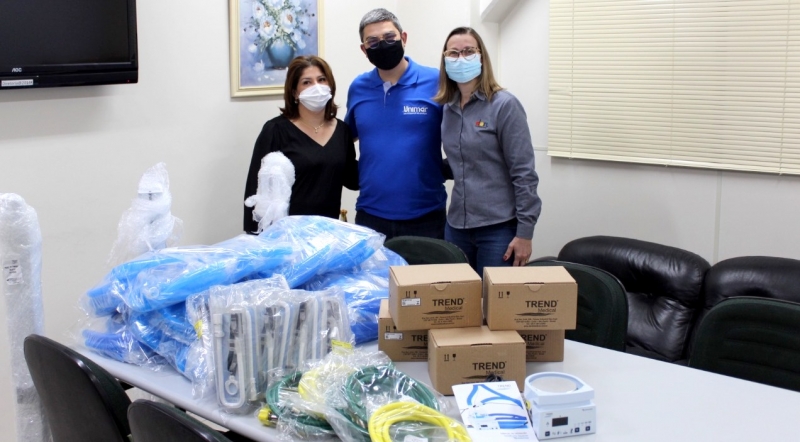 Representantes da Dori Alimentos fizeram a doação de três aparelhos de alto fluxo, que serão colocados em funcionamento nas UTI (Unidades de Terapia Intensiva) do HBU (Hospital Beneficente Unimar).