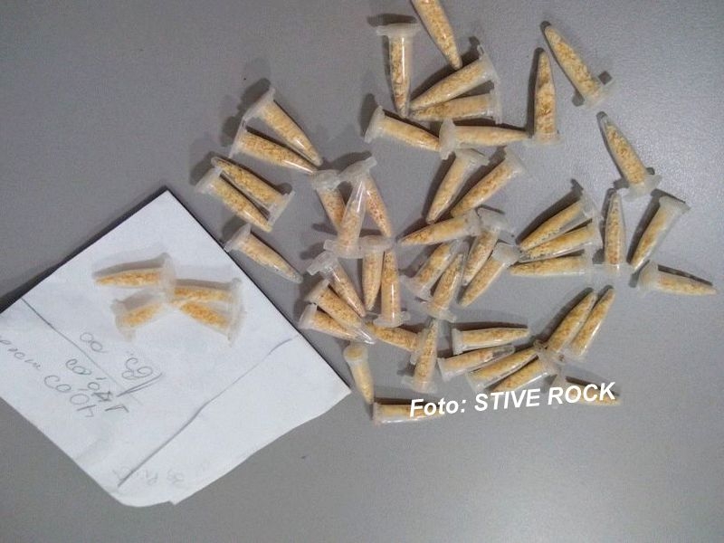 “Chegamos ao local e surpreendemos uma mulher, que se assustou com a aproximação da viatura da Polícia Militar, sendo feita sua abordagem. Imediatamente visualizamos na cintura de sua calça, um pacote plástico contendo 50 pinos plásticos contendo crack. O cão farejador fez uma busca pelo terreno, que era muito extenso, não sendo encontrados mais entorpecentes”, disse o cabo Caetano.