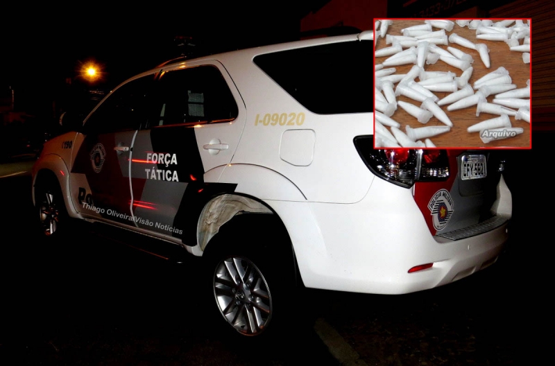 Foram localizados ao total 521 pinos de cocaína, totalizando 340gr do entorpecente. Eles foram encaminhados ao plantão de polícia e presos em flagrante.