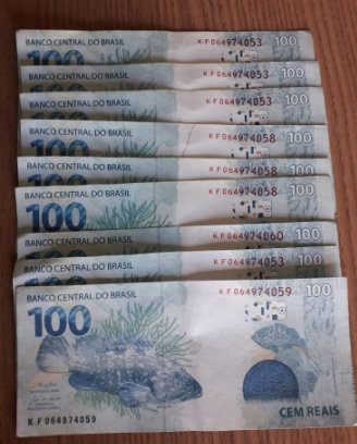 Em busca feita no veículo de um dos suspeitos, mais notas com a mesma numeração foram encontradas e apreendidas.