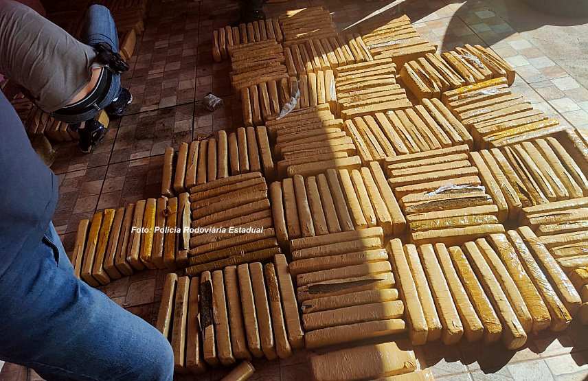 No total foram apreendidos 388 tabletes de maconha que totalizaram quase 400 quilos (396,7 quilos).