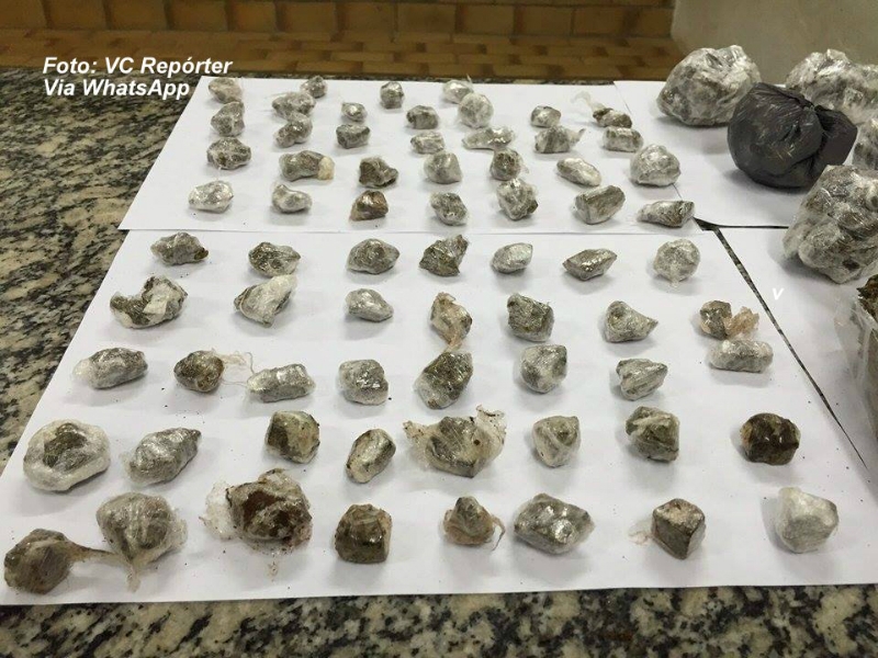Os policiais apreenderam 331 porções de maconha já prontas para a venda, um pedaço grande da droga (pesando cerca de 300 gramas) e outras um pouco menores que ainda seriam embaladas. O maior foi preso em flagrante e o adolescente colocado à disposição da Justiça.