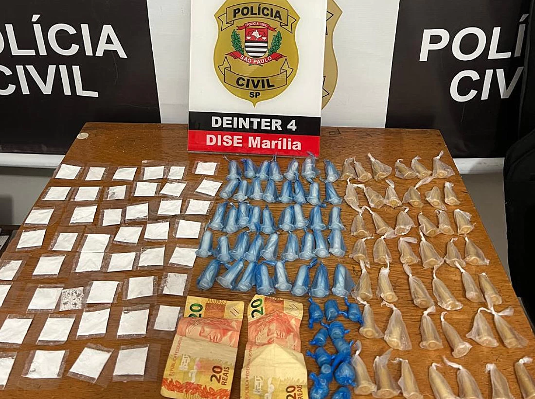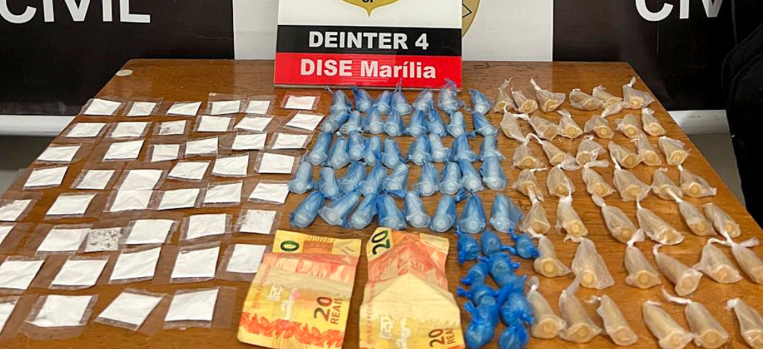O flagrante ocorreu nesta quinta-feira no Bairro Nova Marília III, zona sul da cidade. Uma equipe da DISE (Delegacia de Investigações Sobre Entorpecentes) monitorava um ponto de drogas existente no local, operado por duas pessoas.