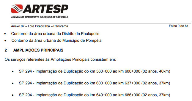 Duplicação da SP-294 somente após Panorama, pelo projeto da ARTESP.