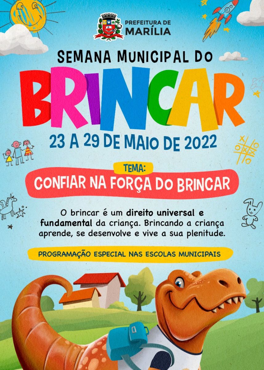 Tendo isso em vista, nas Escolas Municipais de Ensino de Marília, vai acontecer esta semana, tendo como temática “Confiar na força do Brincar”, com programação a ser realizada no âmbito escolar.