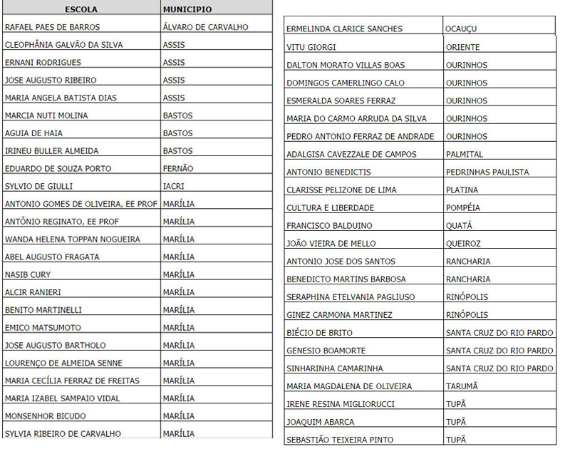 Desse total, 14 só em Marília. A execução começa neste ano. No total em todo o estado, será investido R$ 1,1 bilhão em reformas de 1.384 escolas. O investimento ocorrerá de forma escalonada nos próximos três anos.