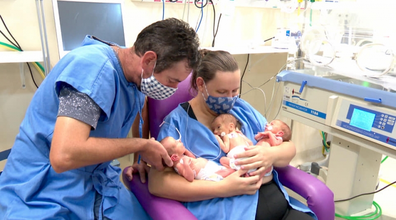 Os trigêmeos nasceram no último dia 29 no Hospital Santo Antônio, em Blumenau. Os pais de primeira viagem são de Rodeio e não fizeram nenhum tipo de tratamento para engravidar. Isso é tão raro, que segundo a médica obstetra Andréia Sayaka, dois em cada 1 milhão de nascimentos podem ocorrer desta maneira.