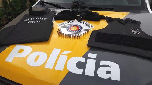 Os policiais apreenderam um colete a prova de balas além de toucas e munições.