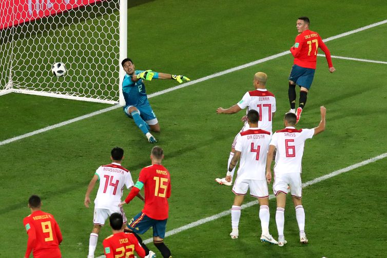 Mesmo perdendo por 2 x 1, a Espanha se classificaria, mas Iago Aspas, que entrou no segundo tempo, salvou a honra da sua seleção com um gol de letra. O gol só foi validado após intervenção do VAR, o árbitro de vídeo. Não fosse a tecnologia, muito provavelmente os marroquinos estariam ainda em festa. Agência Brasil/editada