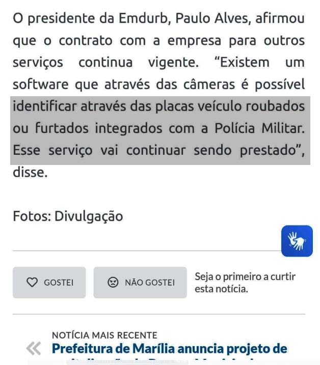 Aliás, no release divulgado sobre a suspensão dos radares, o texto (foto) só esclarecia em parte o que continuava valendo, através de uma entrevista do presidente da Emdurb, Paulo Alves: “Existem um software que através das câmeras é possível identificar através das placas veículo roubados ou furtados integrados com a Polícia Militar. Esse serviço vai continuar sendo prestado”.